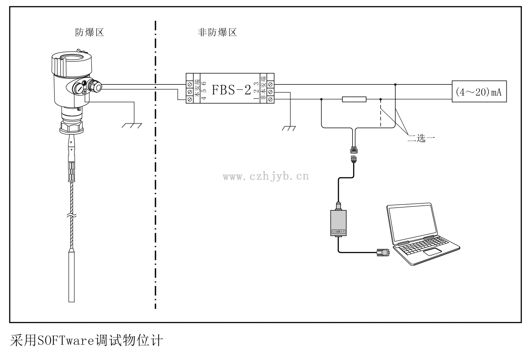 本產(chǎn)品使用時(shí)須用安全柵供電。FBS-2安全柵系本產(chǎn)品的關(guān)聯(lián)設(shè)備,防爆形式為本質(zhì)安全型。防爆標(biāo)志:[Exia] IIC ,供電電壓(21.6~26.4)V DC,短路電流為135mA,工作電流(4~20)mA。